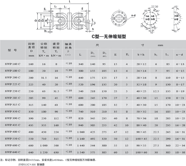SWP-C型無(wú)伸縮短型萬(wàn)向聯(lián)軸器